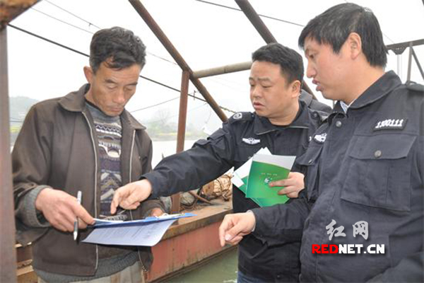 红网怀化3月18日讯(通讯员 凌长启)“严禁未取得开采权的企业和个人私自开采砂石资源……”3月17日上午,怀化沅陵县水政监察大队副大队长周德江在沅水盘古乡河道地段,对正在实施河道开采砂石作业的一位船主宣讲《涉水法律法规》。这是沅陵县在第24届“世界水日”暨第29届“中国水周”到来之际,加大涉水法律法规宣传力度的一组“鲜活”场景。