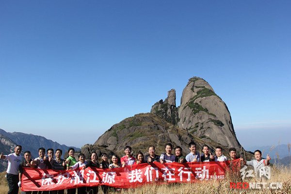 蓝山县水利局的志愿者们早上7点半从紫良瑶族乡坪源村出发,一路长途跋涉来到湘江源头——三分石,将沿途的白色垃圾全部拾装在随身携带的垃圾袋里,带下山统一处理,为湘江源头做了一次“美容”。