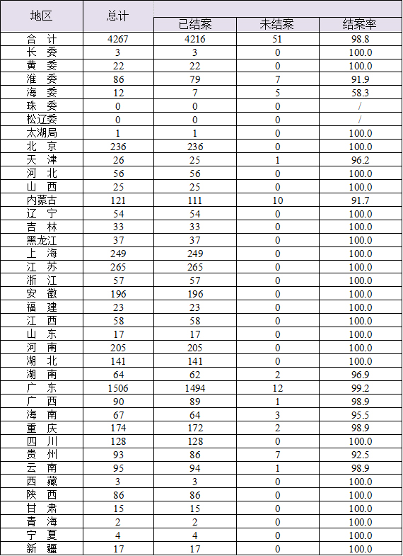 按照《水利部关于印发河湖违法陈年积案“清零”行动实施方案的通知》(水政法〔2019〕147号)《水利部办公厅关于做好陈年积案“清零”行动工作的通知》(办政法〔2020〕74号)要求,各流域管理机构和地方各级水行政主管部门对2018年底前的水事违法陈年积案全面梳理排查,建立查处台账,细化工作方案,压实查处责任,严格节点控制,督办推进落实,抽查复核见效,动真碰硬查处。根据水行政执法统计系统数据,截至2019年6月3日,各流域各地排查确定陈年积案4267件,已查处结案4216件,未结案51个。其中,长江委、黄委、太湖局3个流域管理机构和北京、河北、山西等22个省份已完成案件“清零”。