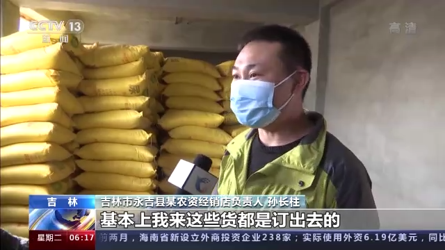 吉林市永吉县某农资经销店负责人 孙长柱:基本上我来这些货都是订出去的,销售还算可以,基本上都能保证老百姓春耕。